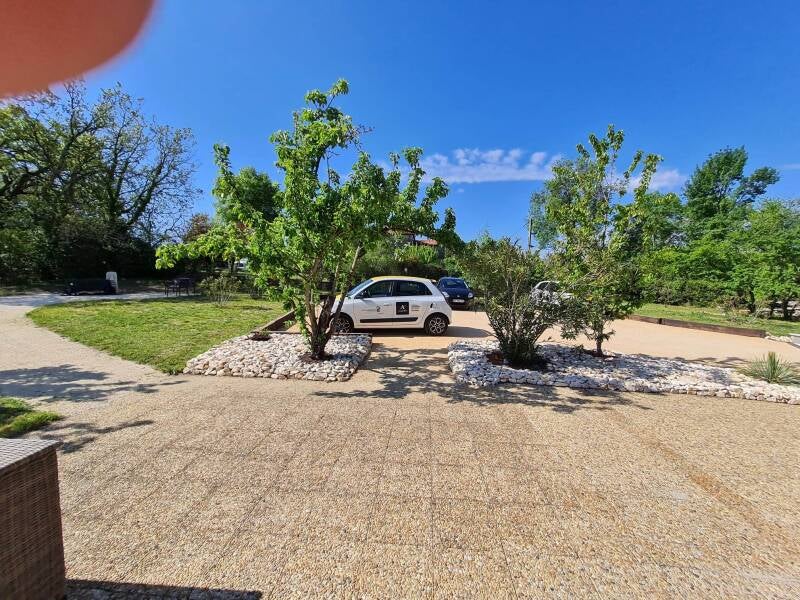 La résidence est entourée d'une zone clôturée de 3000m2 comprenant des espaces accessibles PMR pour des promenades en toute tranquillité et des espaces ombragés très appréciés.